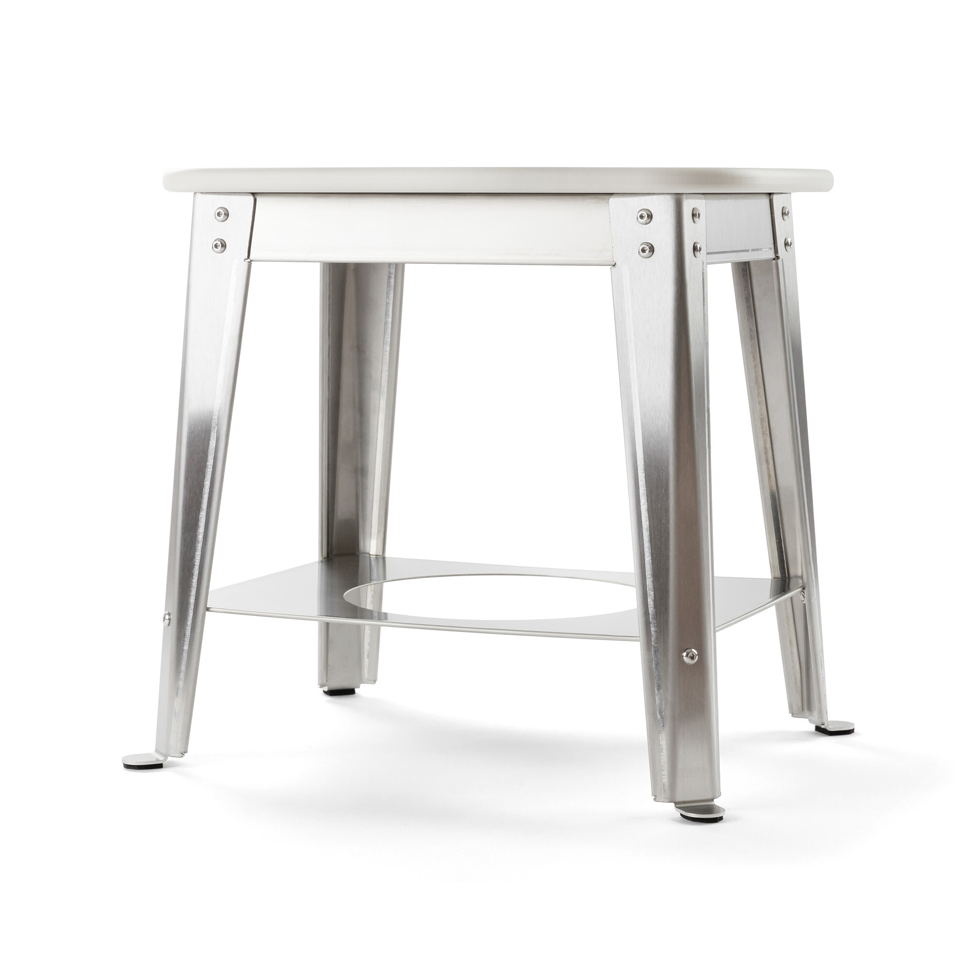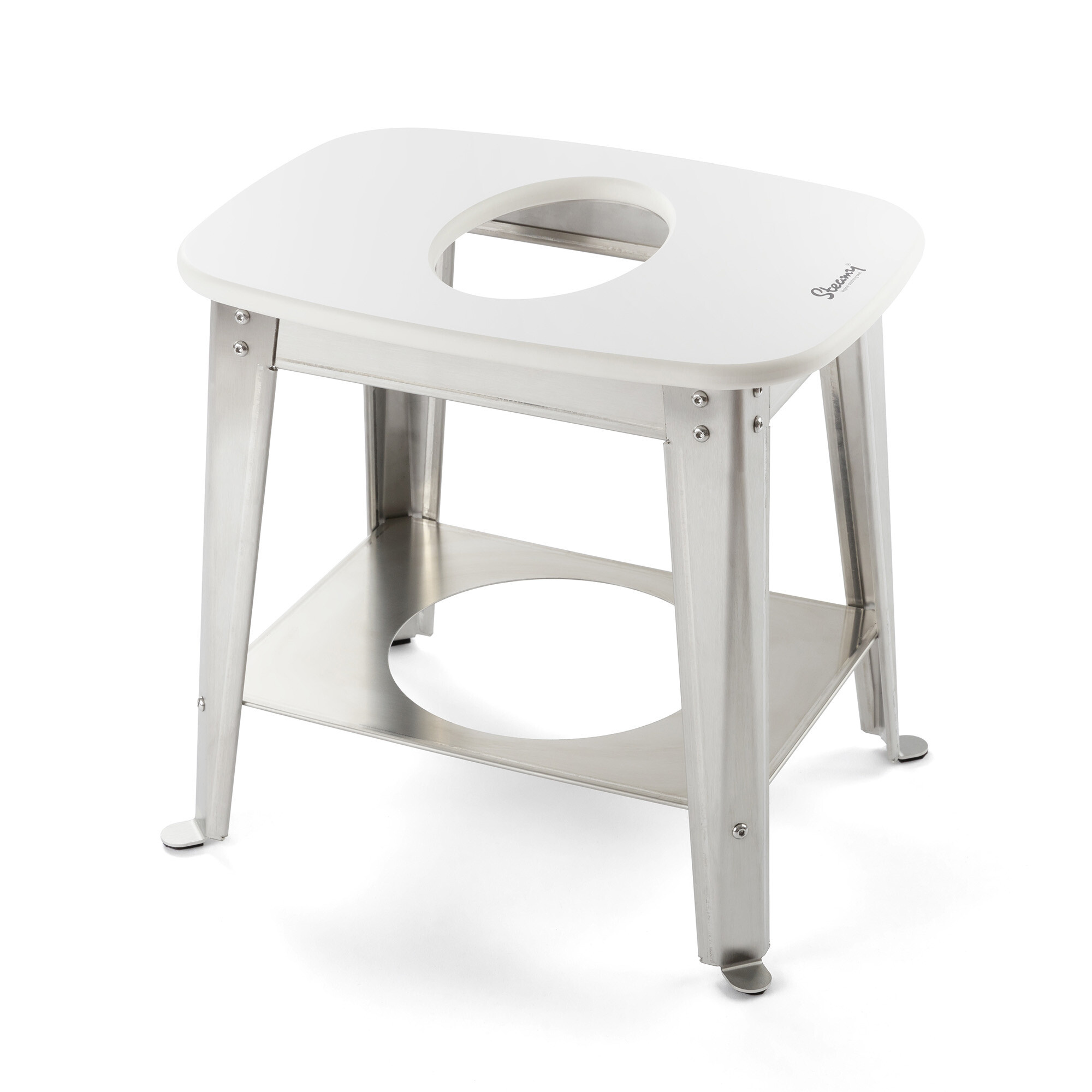 Základem židličky Maia je důmyslná a robustní konstrukce z nerezové oceli s broušeným povrchem, který dodává židličce ušlechtilý vzhled a je zárukou snadného čištění a dlouhé životnosti bez kompromisů. Pohmatové části hran jsou opatřeny ohyby o 180°, které vytváří obliny, takže manipulace s židličkou je velmi bezpečná. Jednotlivé díly jsou spojeny nerezovými šrouby a zajištěny speciálními samosvornými nerezovými maticemi conelock.