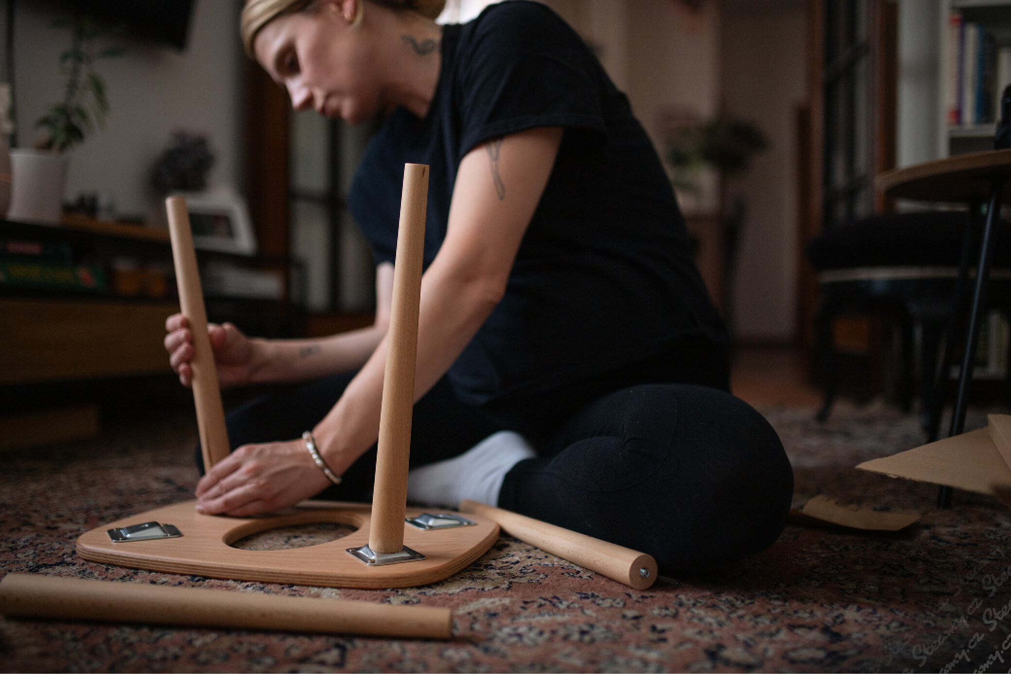 1x sedák židličky s kováním, 4x šroubovatelná noha, návod, dárek: 1 dávka (28g) bylinné směsi "Láska"