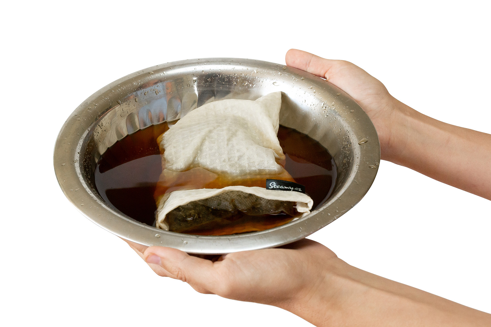 Po ukončení bylinné napářky vložte lázeňský balíček do žínky a používejte opakovaně jako bylinný obklad k ochraně perinea.